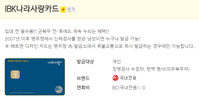 ▼ IBK나라사랑카드 혜택 확인하러가기 ▼